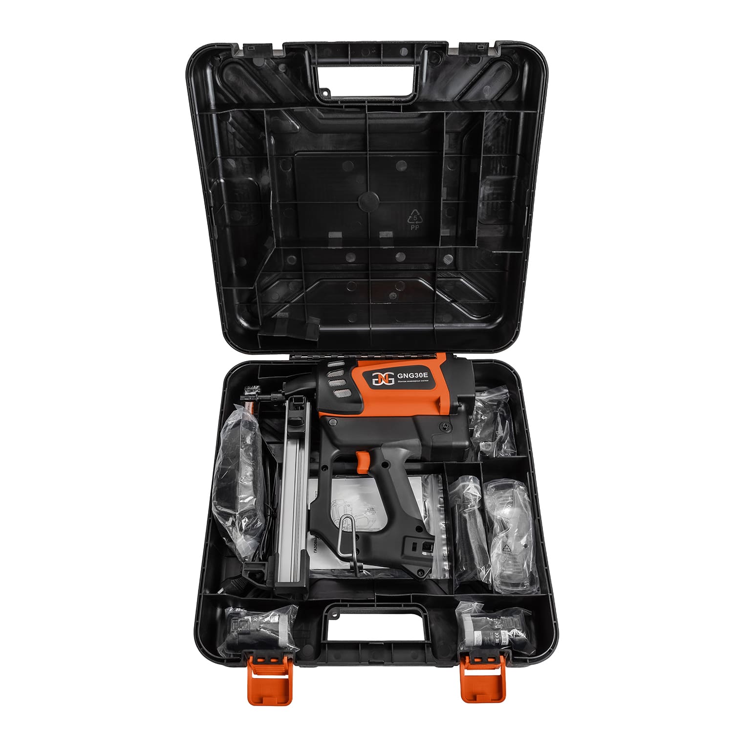 Монтажный пистолет: 1 шт. Аккумуляторная батарея: 2 шт. Зарядное устройство: 1 шт. Сменные стволы: 2 шт. Магнитная насадка: 1 шт. Защитные очки: 1 шт. Беруши: 1 шт. Пластиковый кейс: 1 шт. Инструкция: 1 шт.