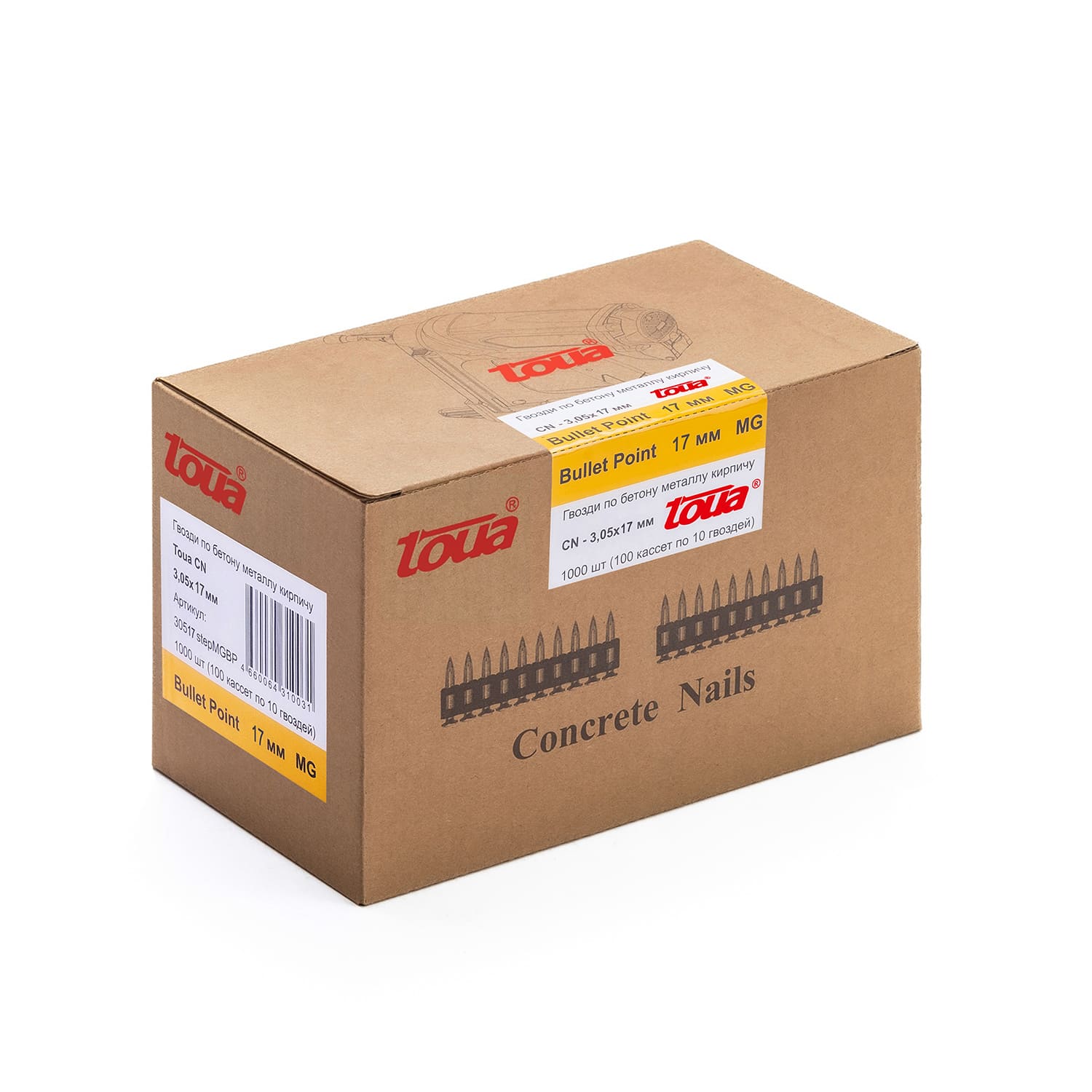 Гвозди по бетону Toua совместимы с монтажными пистолетами производства SPIT Pulsa, Aiken, MAX, Ramset, Makita, HITACHI, Trusty и других производителей.
